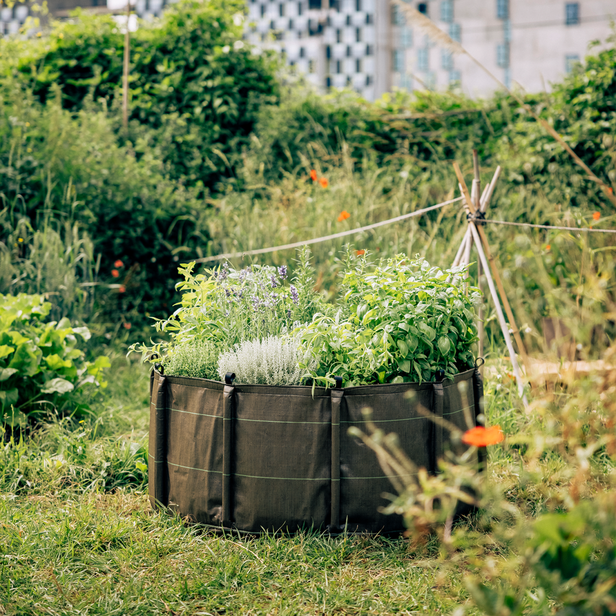 Inspiré de la forme ronde du jardin Mandala, le BACROUND est idéal pour cultiver plantes potagères, aromates et fleurs. Sa profondeur de 40 cm convient également pour la culture d’arbres. Perméable, la toile de nos contenants laisse la terre respirer le sol et le trop plein d’eau s’écouler. En savoir plus sur les caractéristiques de nos toiles: à propos du design BACSAC®