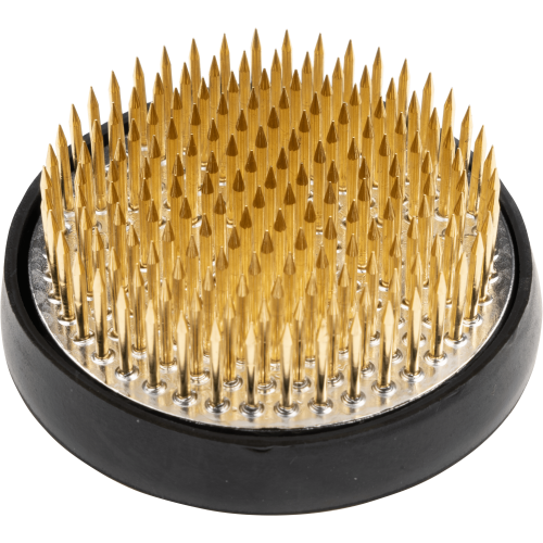 Utilisé pour les compositions florales et plus traditionnellement dans la pratique de l’ikebana, le kenzan est un socle en plomb hérissé de pics en laiton, permettant de maintenir en place fleurs et branches ligneuses. Disposer le kenzan dans un bol, un vase ou une soucoupe rempli d’eau puis piquer les tiges. Fabriqué au Japon par NIWAKI. Pour en savoir plus sur la pratique de l’ikebana, retrouvez l’article de l’artiste Johanna Tagada Hoffbeck sur notre Journal