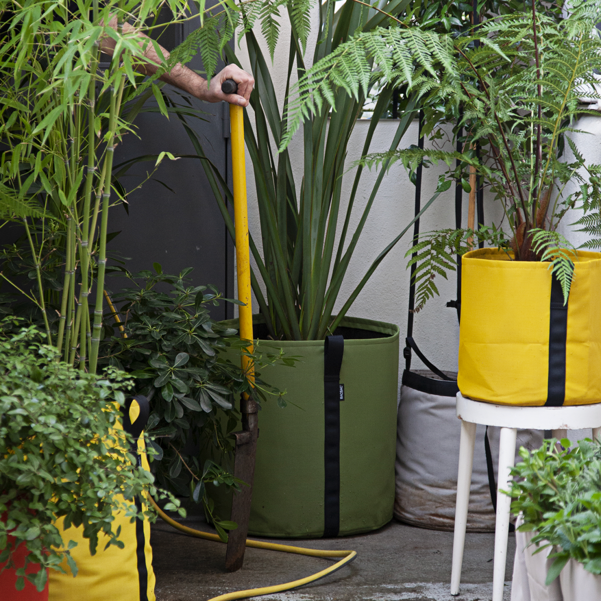 Avec sa sangle noire qui forme deux poignées, le pot rond classique est le modèle incontournable de BACSAC®. Décliné en cinq tailles, il accompagne la croissance de vos plantes, de la graine à l'arbre. Perméable, la toile de nos contenants laisse la terre respirer et le trop plein d’eau s’écouler. Pour un usage en intérieur, placez une coupelle sous le pot! En savoir plus sur les caractéristiques de nos toiles: à propos du design BACSAC®
