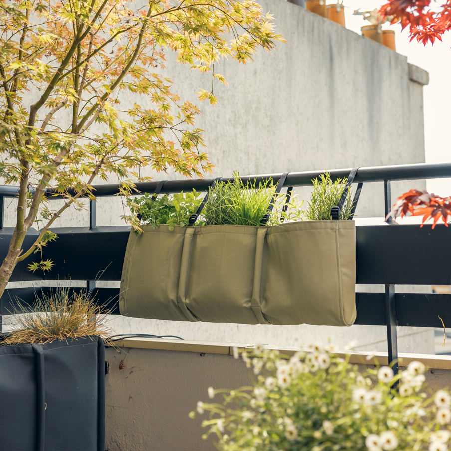 Sa double paroi technique préserve l’équilibre nécessaire entre l’air, la terre et l’eau. Ultra-résistante au déchirement et à l’abrasion, la toile extérieure est traitée anti-UV et résiste aux températures extrêmes. À l’intérieur, un feutre géotextile hydrophile protège et contient les racines. Perméable, cette jardinière de balcon laisse l’eau s’écouler et la terre respirer.