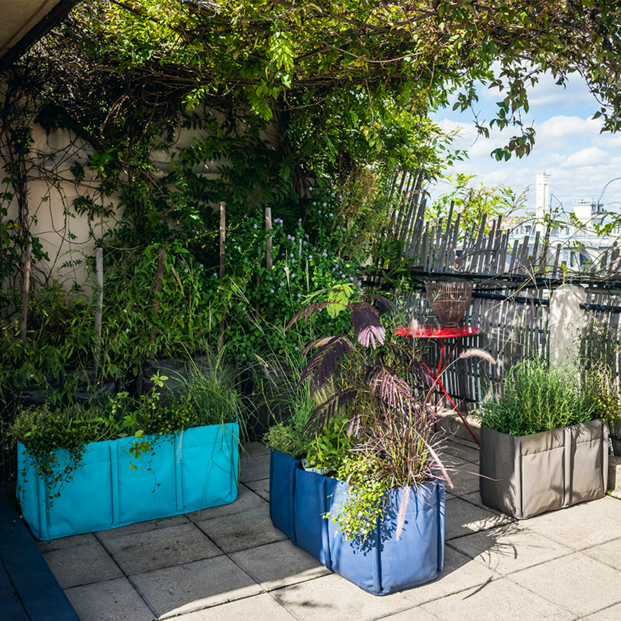 The BACLONG delimits easily spaces or creates a screen of plants. It is deep enough to grow vegetable gardens, climbing plants or bushes. Its technical multi-layered fabric maintains the necessary balance between air, soil and water. Tear strength, abrasion and UV-resistant, the outside fabric can withstand extreme temperatures. Inside, the geotextile felt layer protects and contains the roots, limits evaporation and distributes water. The BACLONG planter is permeable to let the soil breathe and the excess of water flow out.