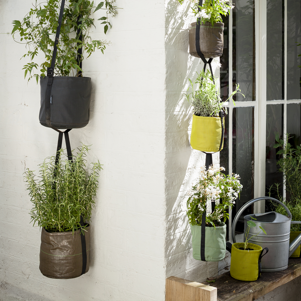 A nail, a hanger, a branch… There are infinite ways to hang this pot ! The handle is adjustable at different heights and goes under the pot to hang them also one another. The BACSAC® hanging pot is permeable to let the soil breathe and the excess of water flow out.