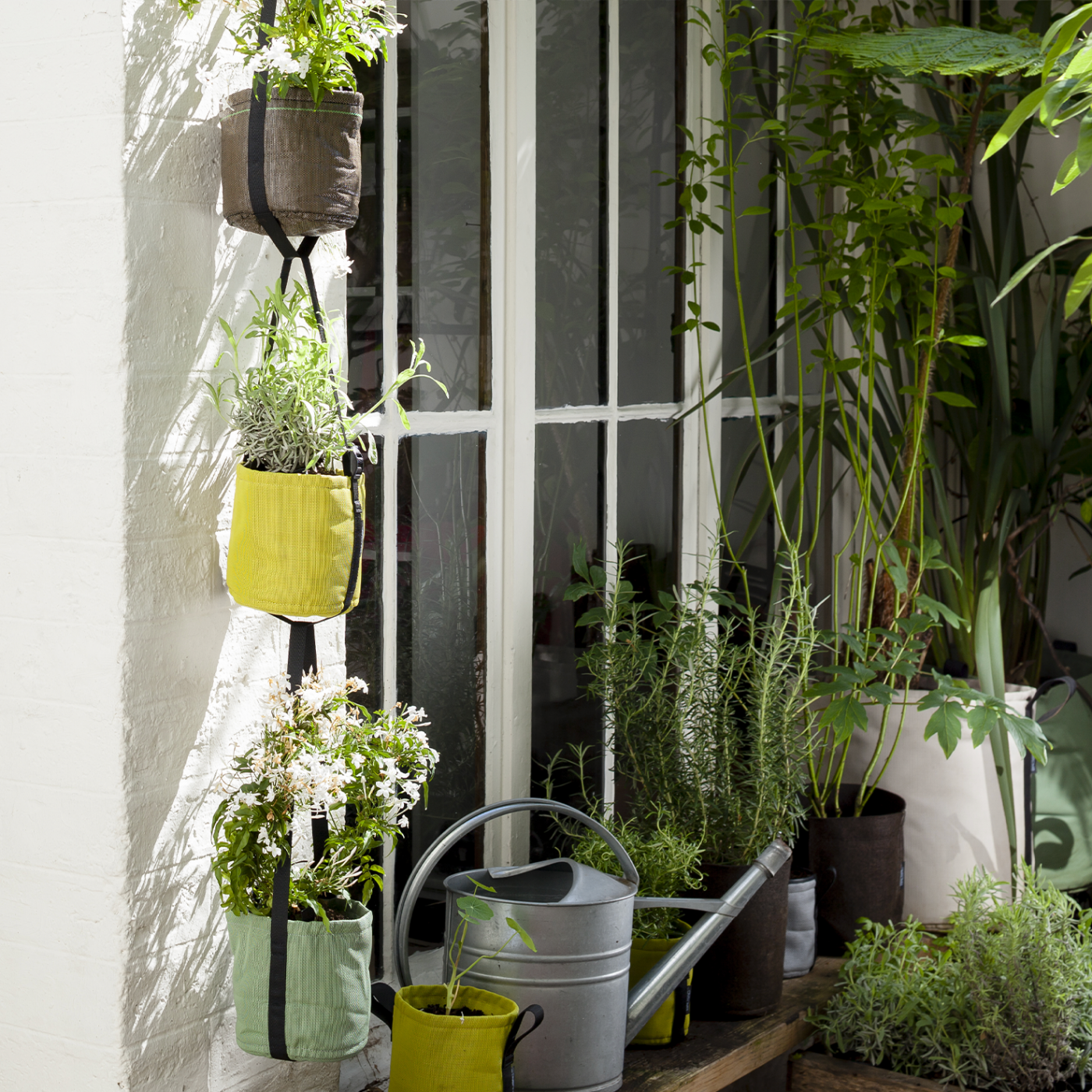 Flexible, lightweight, and easy to carry around everywhere, our BACSAC® round hanging pots allow the soil to breathe and any excess water to drain out to ensure healthy, harmonious growth for all your plants. Our BACSAC® planter is made from a fabric cover which respects and protects the natural balance of your soil. Our original models were only available in a geotextile material until we expanded our range to include Batyline® hanging pots for your balcony or terrace. These come in an array of colours. The handle goes all the way around the pot and allows you to hang one pot from another to form a beautiful green pillar. BACSAC® will make you fall in love with gardening.