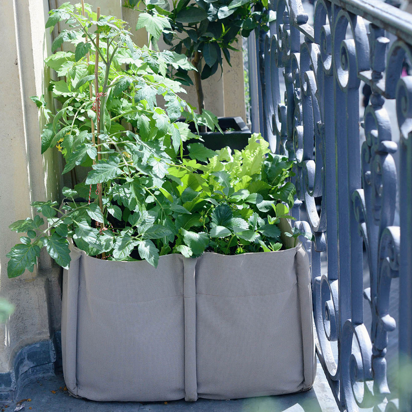 Place the soil and plant vegetables directly in the BACSQUARE. Adjust the straps to get the sides straight. This vegetable garden is perfect to plant on a balcony or a terrace. Straps delimit the space to facilitate plantings of aromatic herbs or tasty vegetables (tomatoes, carrots, salads…)
