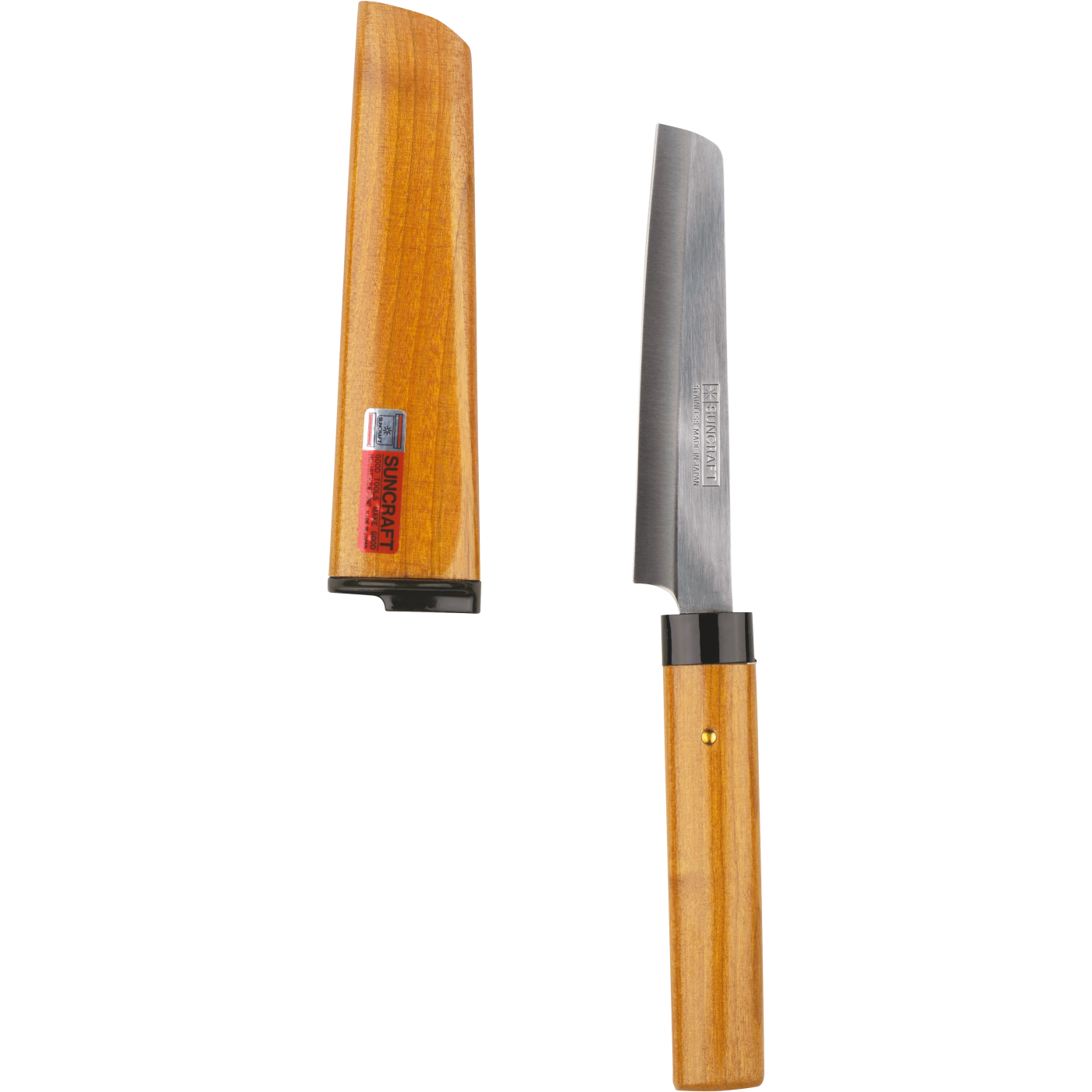 FRUIT KNIFE – NIWAKI, light and elegant, ideal for fruit, cut flowers and small everyday tasks at home or in the kitchen. Stainless steel blade and cherry wood handle with matching sheath — a simple and authentic charm.