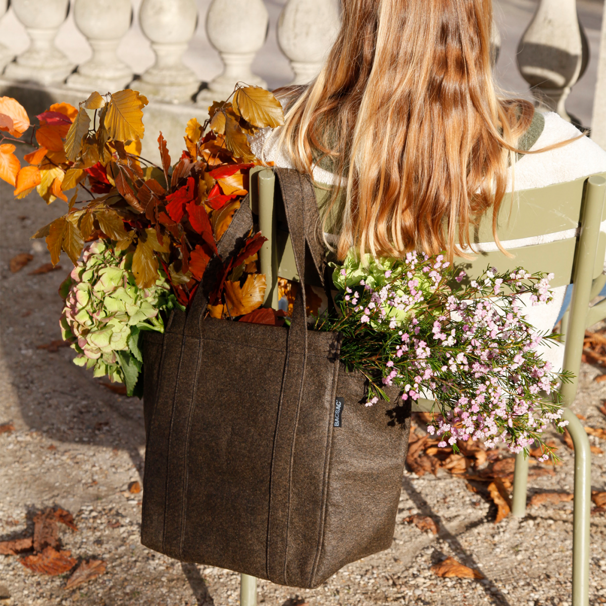 It’s a bag, an everyday bag, an ultra-light, ultra-strong, ultra-elegant bag that follows you everywhere, in the city and in the garden. A bag made of felt or geotextile fabric, comfortable to carry by hand or on the shoulder. Its four corner zips open side panels that adapt to its contents: flowers, branches, fruits, vegetables...